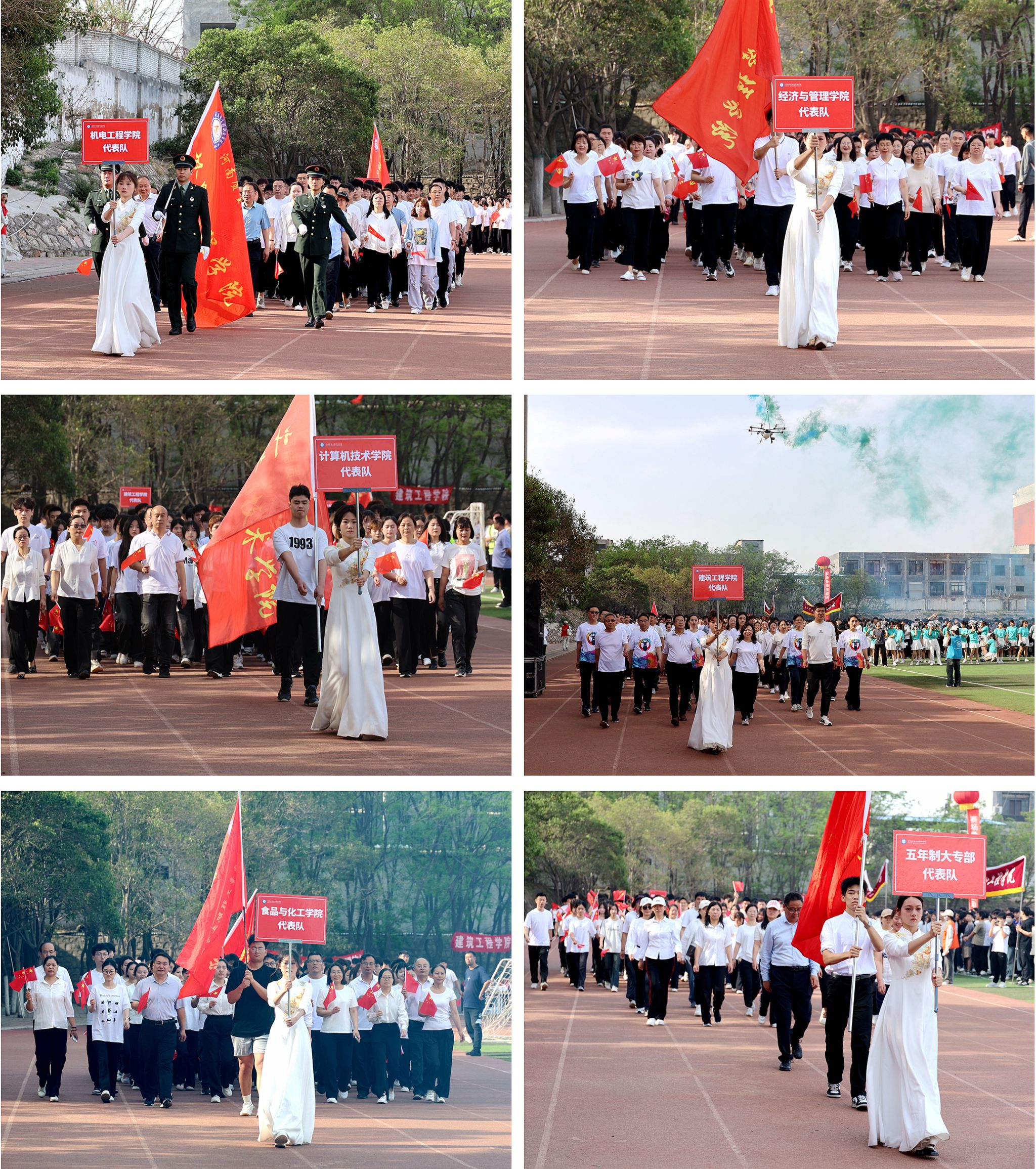 鹰城大地,万物日新;质院校园,绚丽多姿。4月18日上午,老金沙9170登录第二十届田径运动会开幕式在校本部田径场举行。院领导鲁书喜、金铮、席会平出席运动会开幕式,各职能部门、各二级学院师生代表等参加开幕式。开幕式由副院长席会平主持。