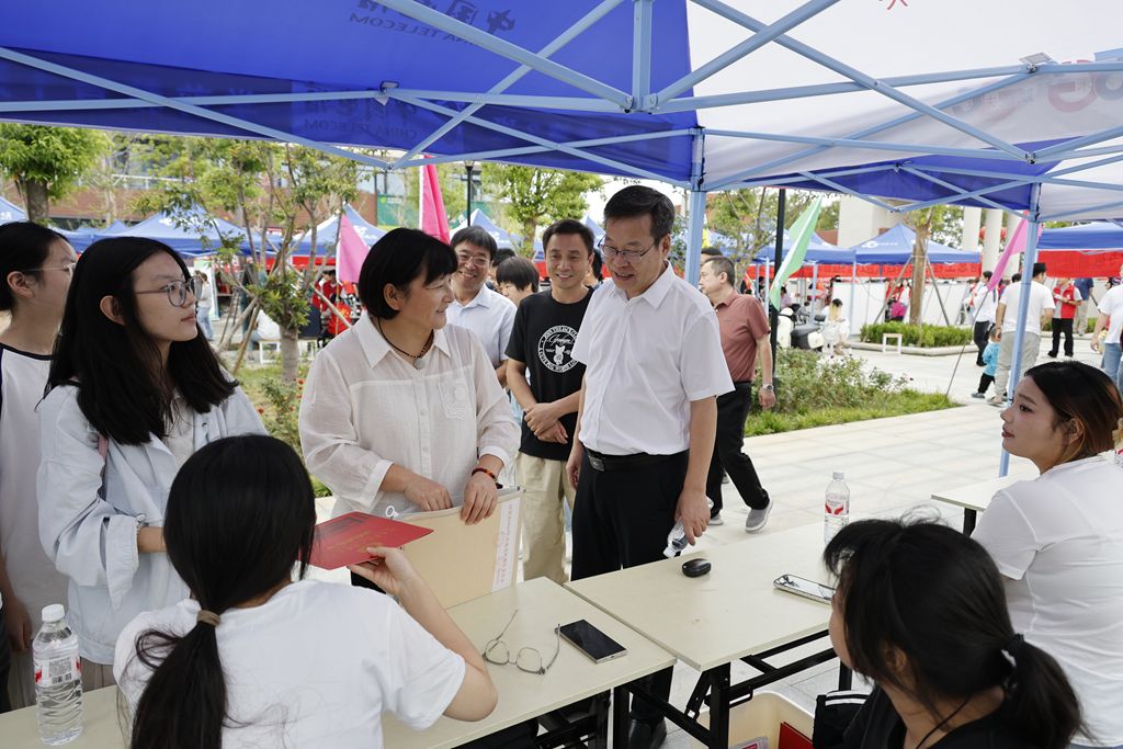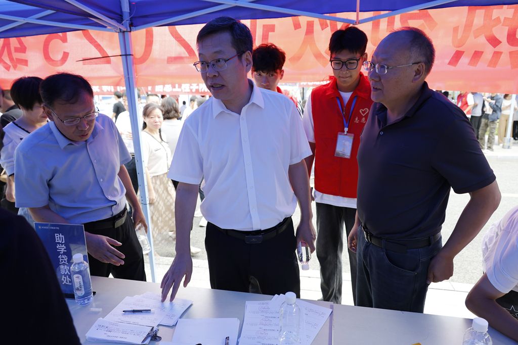 迎新首日,学校领导鲁书喜、金铮、席会平、张虽栓前往迎新现场检查迎新工作、关心慰问参与迎新的师生和工作人员,对迎新工作的有序开展给予充分肯定,对大家的辛勤付出表示感谢。校长鲁书喜认真听取各学院(部)迎新工作汇报,详细了解报到进展和特色活动,并强调迎新工作是新生到校的第一印象,各学院(部)要在保障流程高效便捷的基础上,进一步突出人文关怀,为新生和家长提供全面、热情、周到的帮助,切实让新生尽快适应环境、融入集体。
