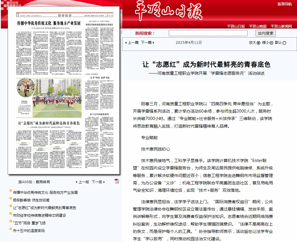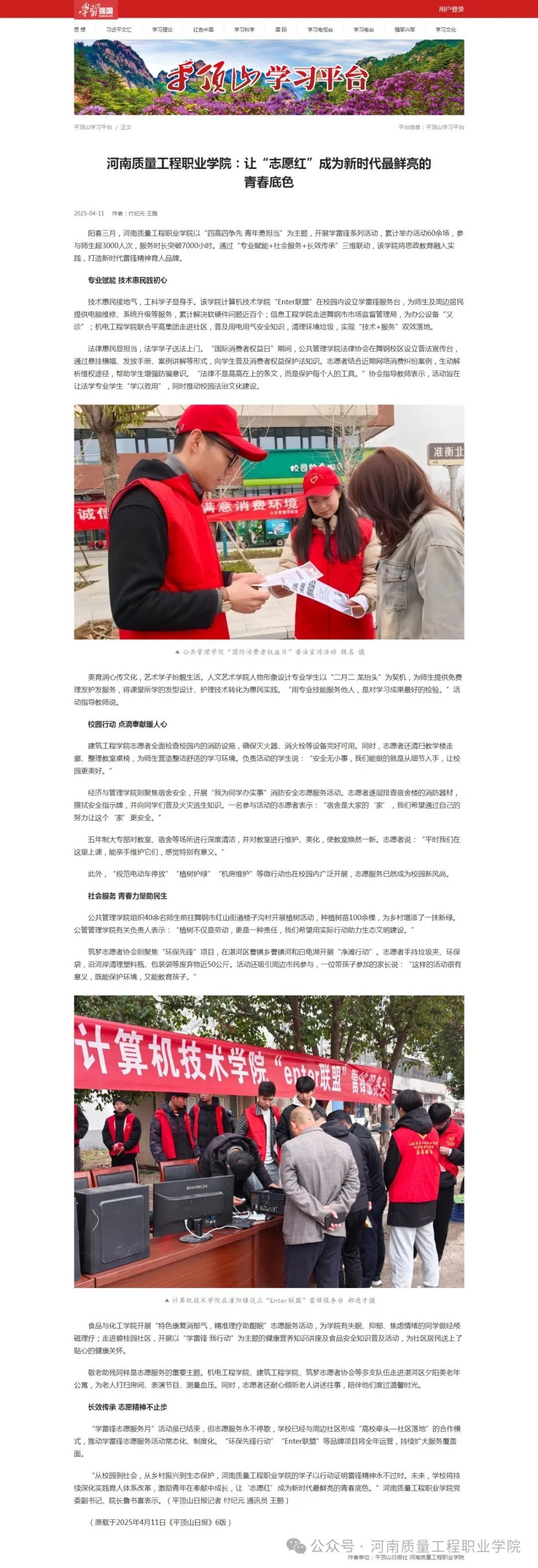 媒体之声 | 学习强国、《平顶山日报》:老金沙9170登录 让“志愿红”成为新时代最鲜亮的青春底色