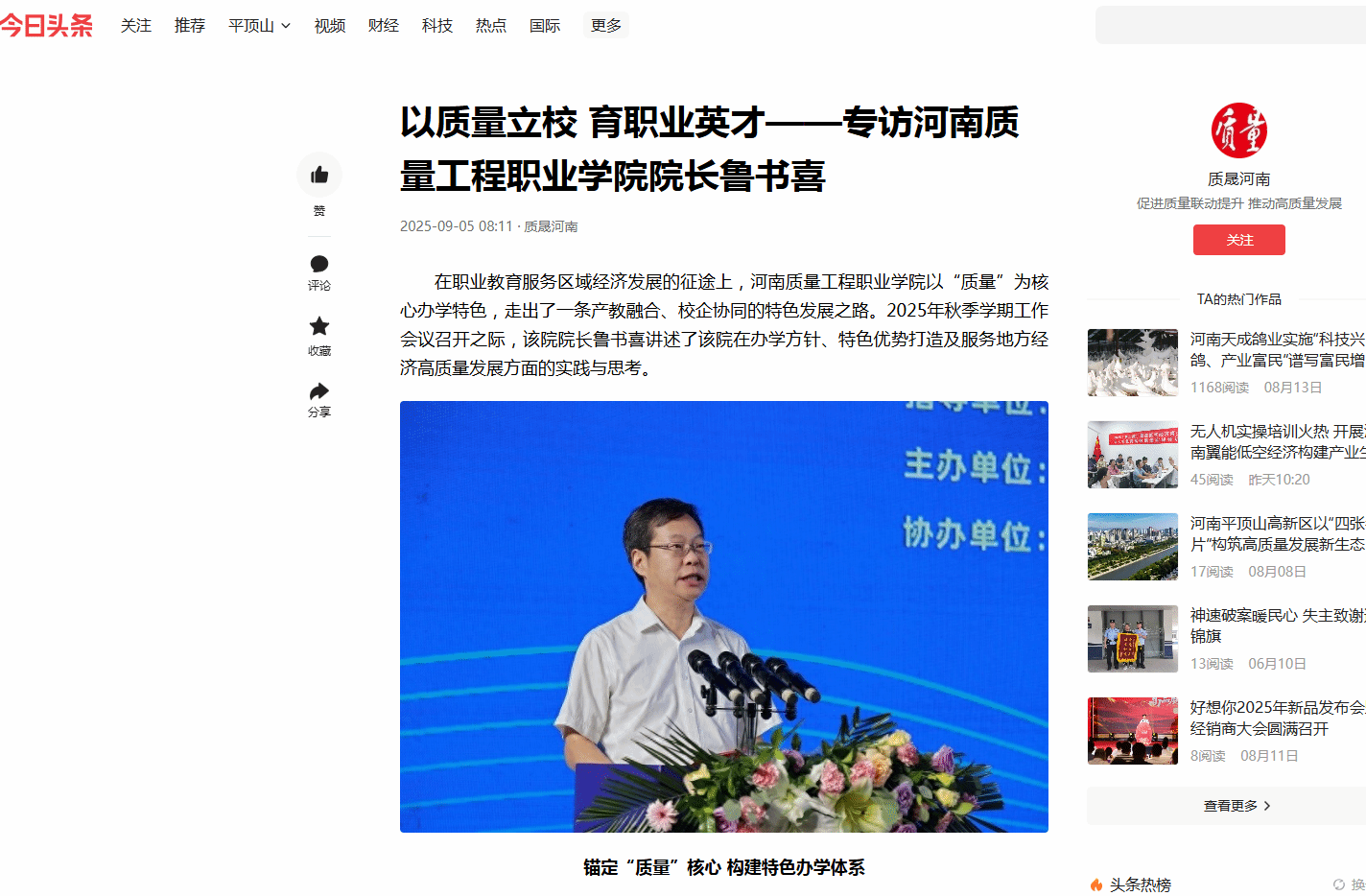 中国质量报、河南质量网等:以质量立校 育职业英才——专访老金沙9170登录院长鲁书喜