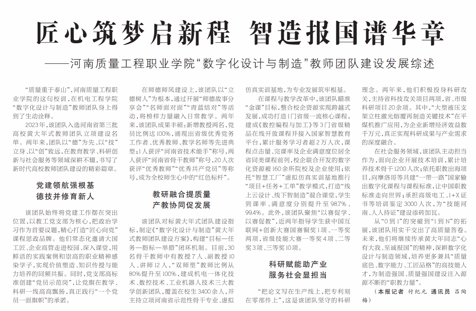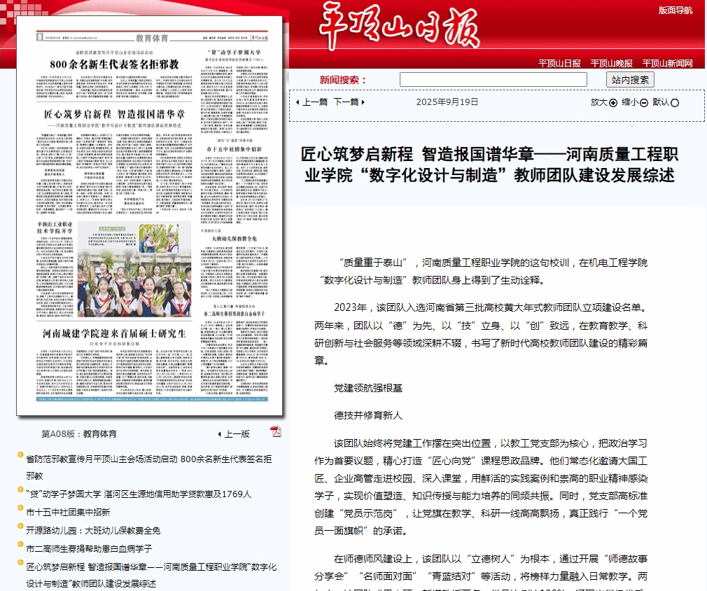 平顶山日报:老金沙9170登录“数字化设计与制造”教师团队建设发展综述