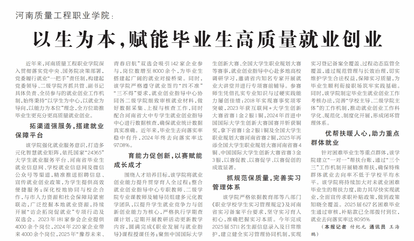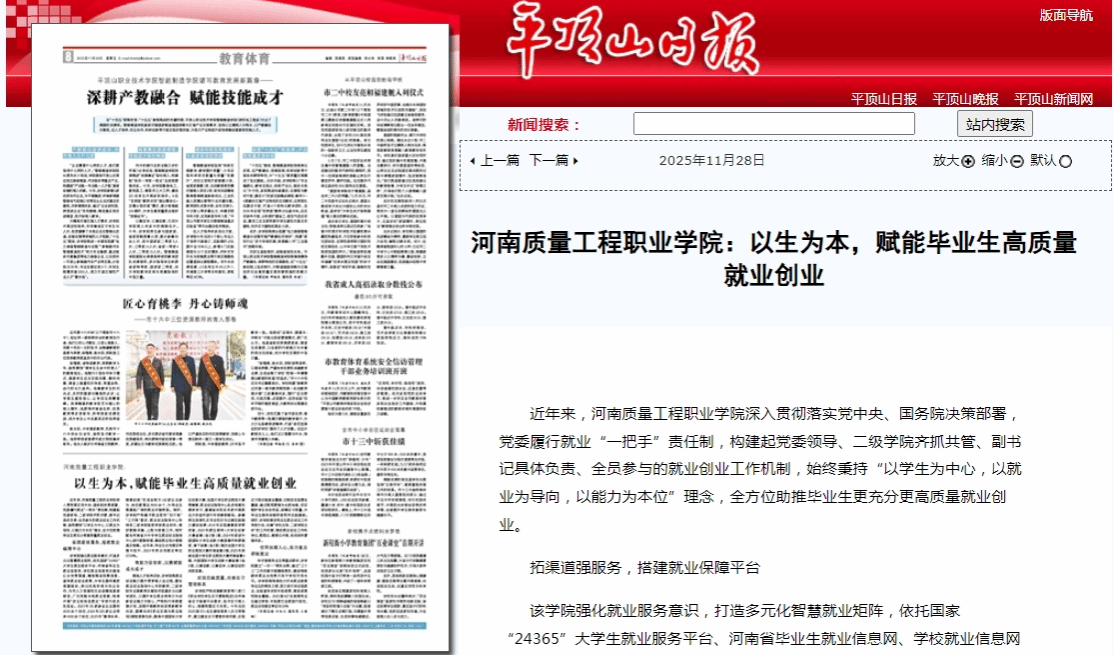平顶山日报:老金沙9170登录——以生为本,赋能毕业生高质量就业创业