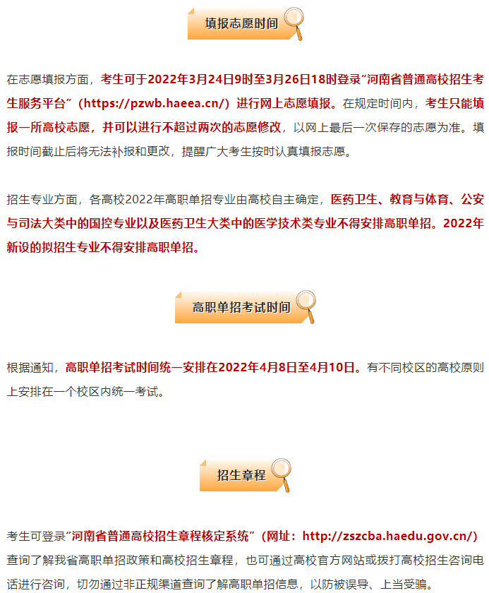 省教育厅日前发出通知,决定2022年继续开展高等职业教育单独考试招生(以下简称“高职单招”)和技能拔尖人才免试入学工作。据了解,2022年省教育厅共批准105所高校开展高职单招工作,其他高校不得开展高职单招工作。高职单招考试时间统一安排在2022年4月8日至4月10日,考生可于2022年3月24日9时至3月26日18时进行网上志愿填报。