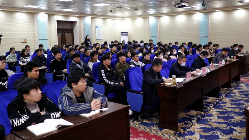 12月9日上午,平顶山市委常委、宣传部长、副市长刘文海来到我院围绕学习宣传贯彻党的十九届六中全会精神,为师生讲授思政课。学院党委书记邱红标主持思政课。市委宣传部副部长董玉玺,学院党委副书记、工会主席姜葆亮参加活动。学院相关职能部门负责人、思政部教师、辅导员代表以及100余名学生参加学习。