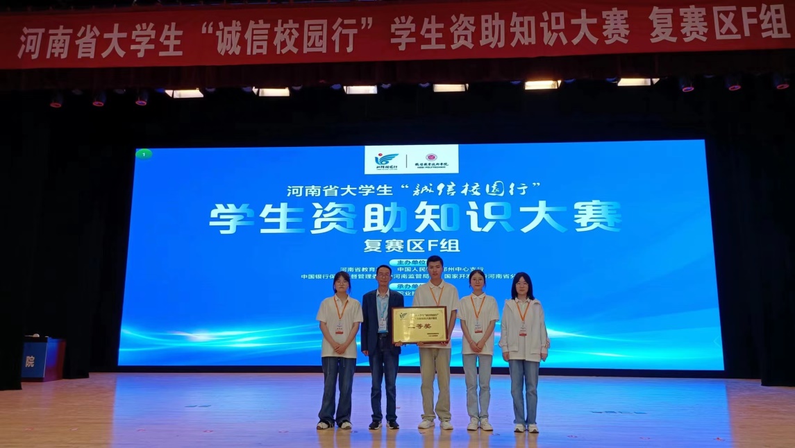 5月14-15日,由河南省教育厅、中国人民银行郑州中心支行等、中国银行保险监督管理委员会河南监管局、国家开发银行河南省分行四部门联合主办的河南省大学生“诚信校园行”学生资助知识大赛(F组赛区)在鹤壁职业技术学院举行,我院代表队荣获二等奖